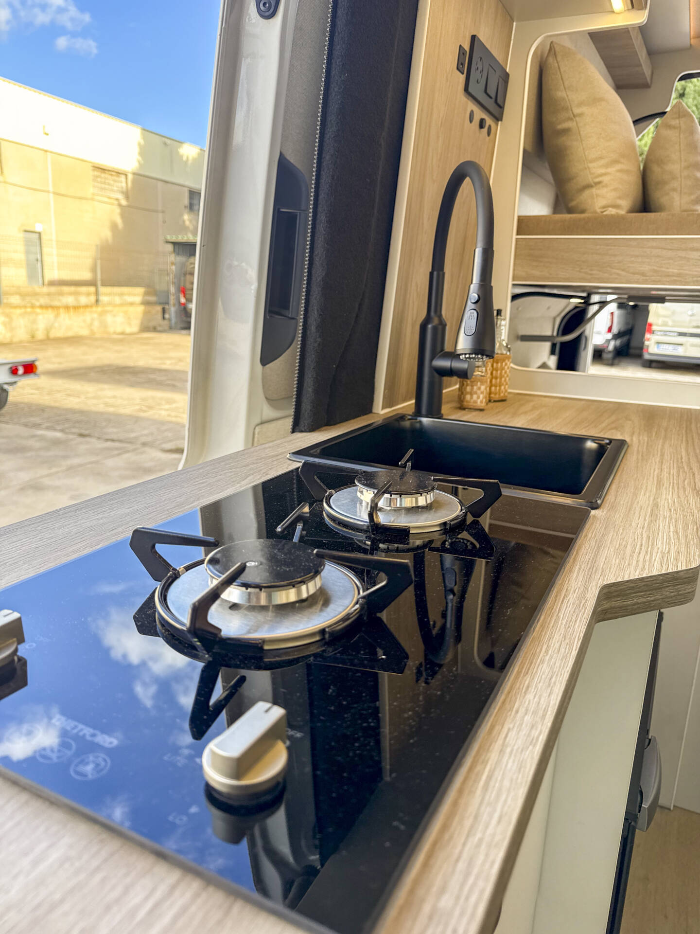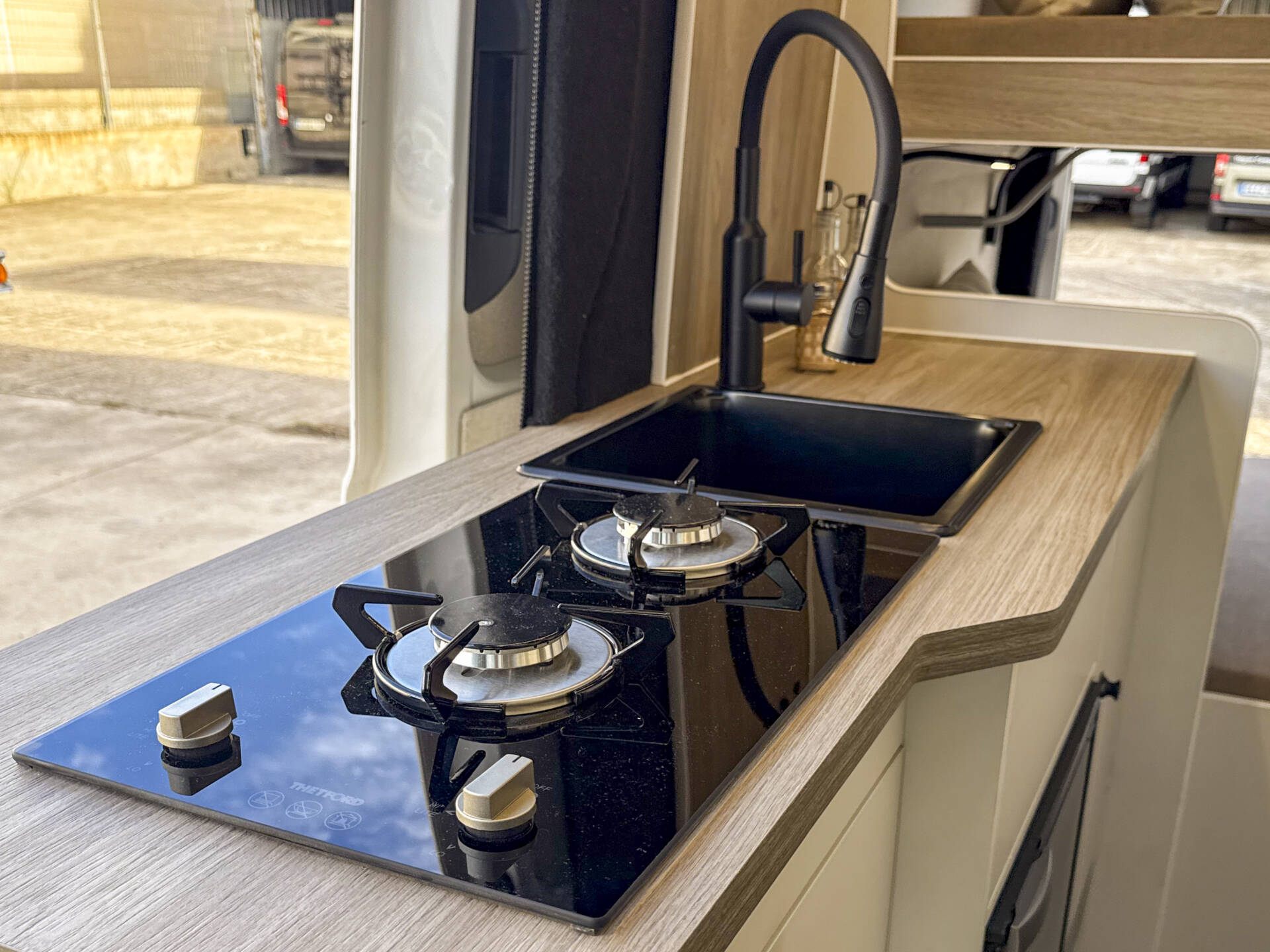 • Depósito de 75L. de aguas grises en los bajos del vehículo con descarga manual