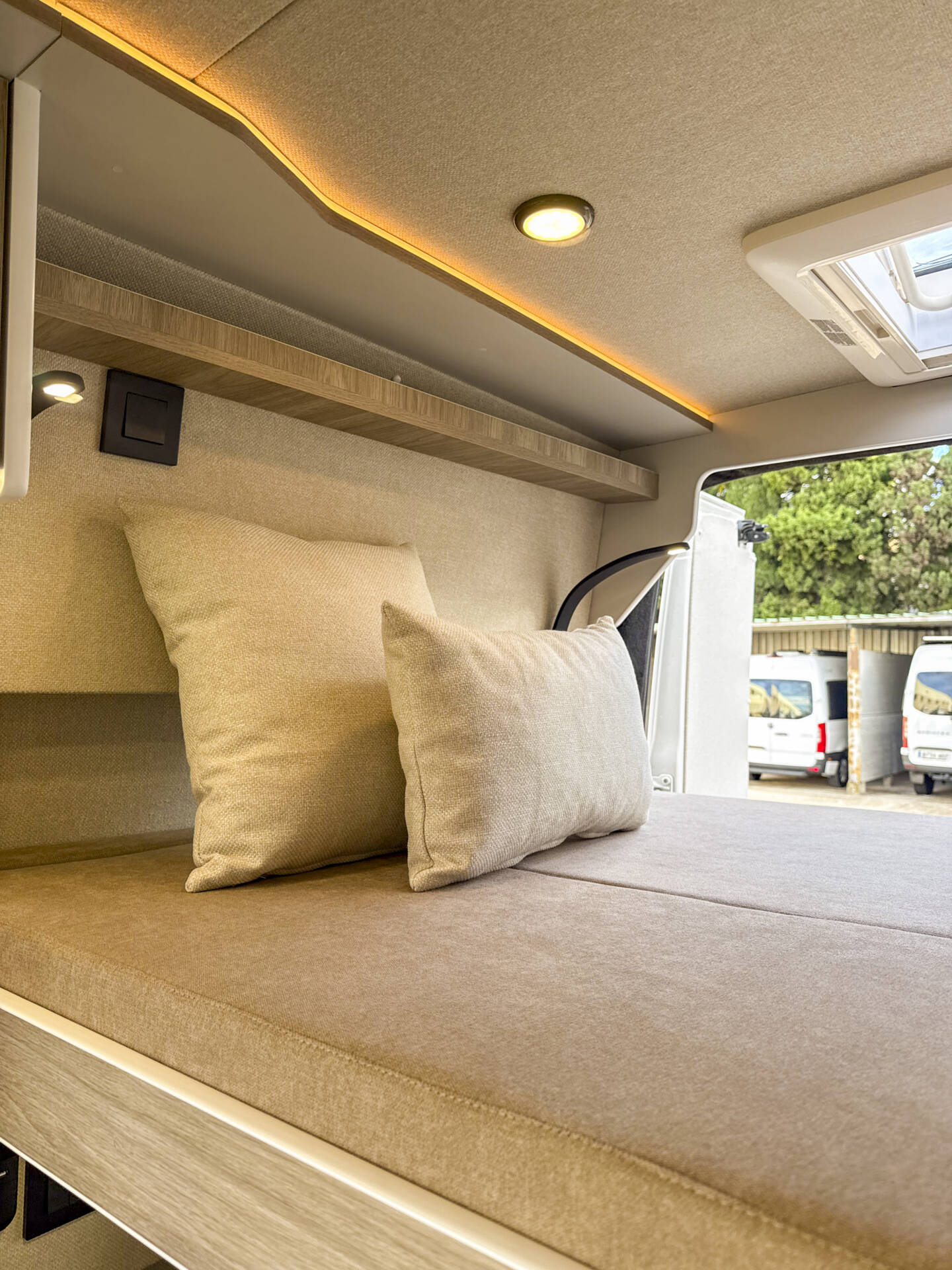 • 1 Claraboya de 28x28cm en zona baño con oscurecedor y mosquitera.