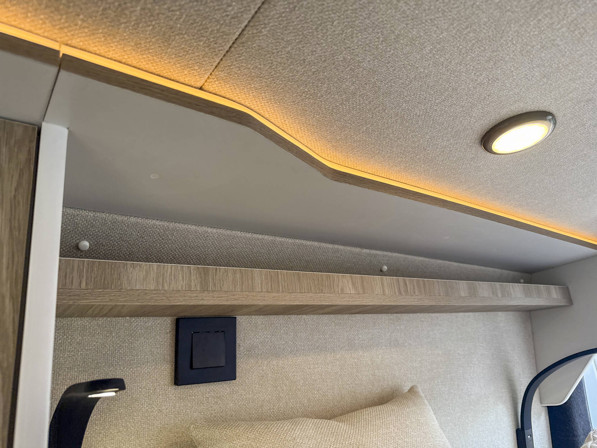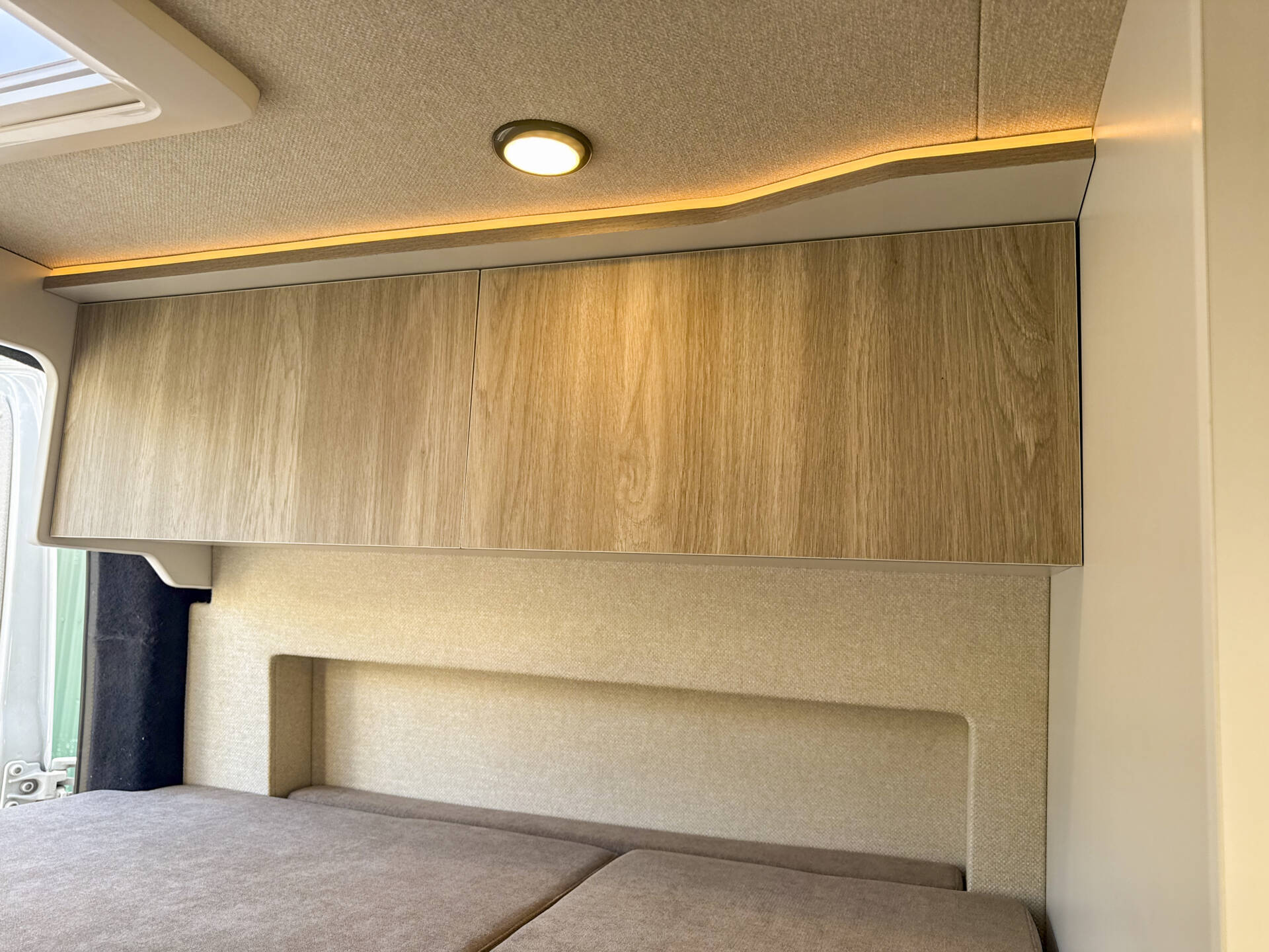 • Tiras led sobre muebles superiores y escalón delantero regulados mediante dimmer electrónico